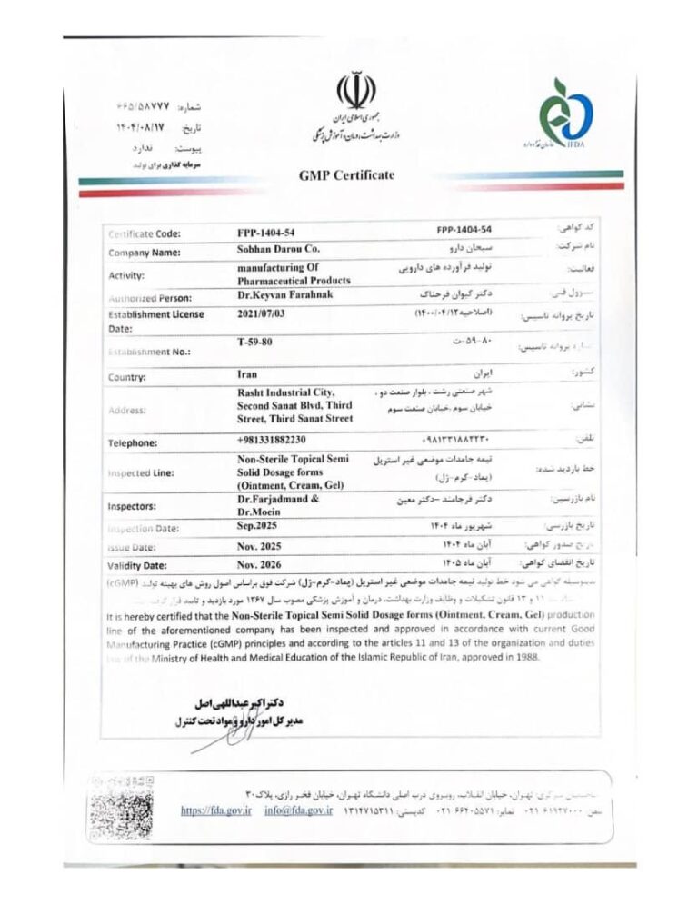 تمدید گواهیGMP خط تولید نیمه جامدات